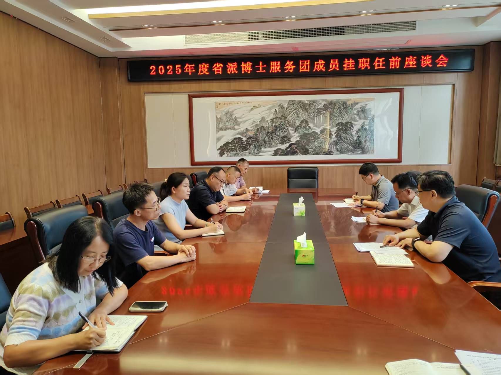 贺德稳介绍了我校2025年度省派博士服务团成员对接情况并向入选的各位成员表示热烈祝贺,3名省派博士服务团成员分别围绕前期与接收单位对接情况、挂职期间工作打算进行交流发言,基层党委负责同志对做好挂职期间服务保障作表态发言。